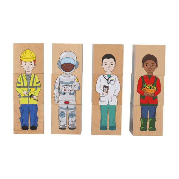 A great tool for open-ended play. Parents and teachers can also create more guided experiences involving person naming, sorting and even simple counting while developing and improving fine motor skills. Children will be drawn to all the fun they can have with this set. Made with FSC hugar wood and eucalyptus wood.