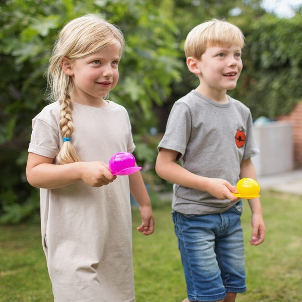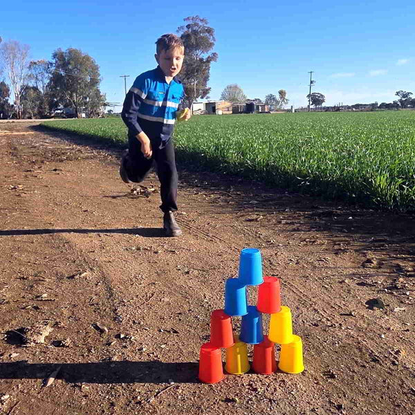 Three classic active play party games for children. This kit features everything you need to host sack races, egg and spoon races and set up a knock them down carnival style cup stack. There's enough here to keep children entertained for hours and safely burn some energy.